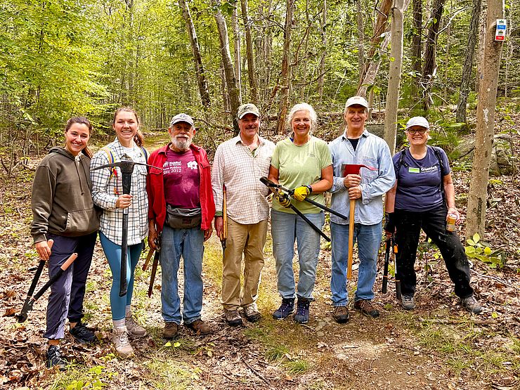 These volunteers assist with property maintenance projects, trail building, invasive species management, and more!