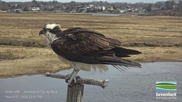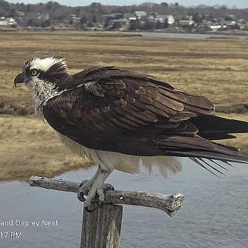 At about 12:00 pm today, Annie was spotted for the first time back on the nest at Lobstaland. A few days later than last year, but she has consistently been the first one back over the years, which is also consistent with Osprey in general. This signals the official start of another nesting season at this site - very exciting. We will look for Squam to arrive back any day now.