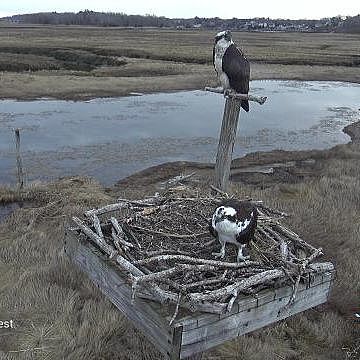 Squam has still not been sighted and, as a reminder, he returned in 2025 on April 10. What we are all observing now is a true glimpse into the life cycle of Osprey and the competitiveness of their every day life. I remain confident Squam will return and restore order and normalcy, but his tardiness offer an opening for other opportunistic males. One way or another, Annie needs a mate to procreate. We all want it to be Squam with his stellar proven track record, but her life must go on, with or without him. So we watch and wait.